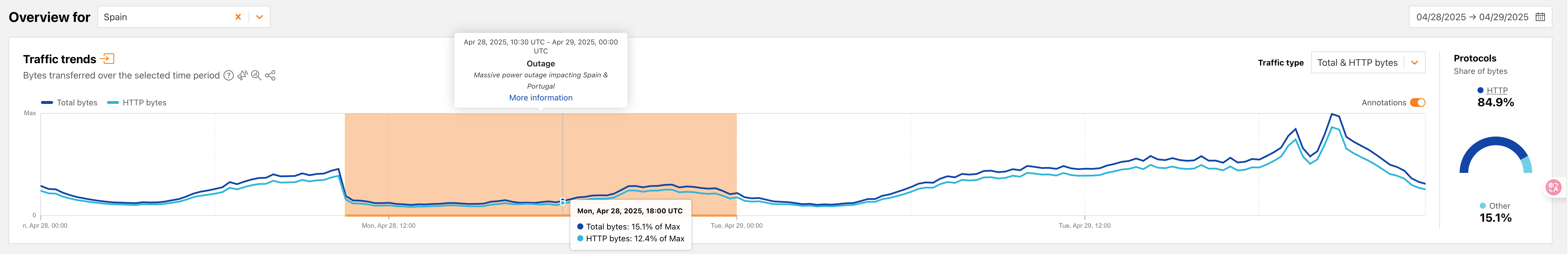 这个图片是我问 gork 最近一次大停电发生在哪个国家哪个时候他告诉我的 可以看到西班牙 2025 年 4 月 28 日发生了大停电入站流量都没了